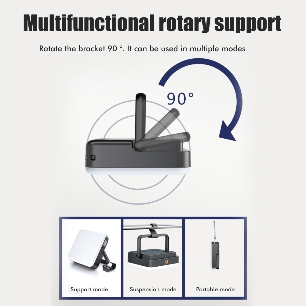 Функция: 1. Большое наводнение, режим двойной зарядки, много -функциональная вращающаяся ручка. 2. Задний кронштейн можно повернуть на 90 градусов, с застроенным сильным каменным железом, который может адзорон на поверхности металлических объектов. 3. Водонепроницаемый IPX5, его можно использовать в дождливые дни, не опасаясь ветра и дождя. 4. Он может быть временно использован в качестве банка питания, встроенной литийной батареи большой емкости, длительного срока службы батареи. 5. Независимо установить дизайн SOS Switch, простой дизайн, загорается после нажатия.
