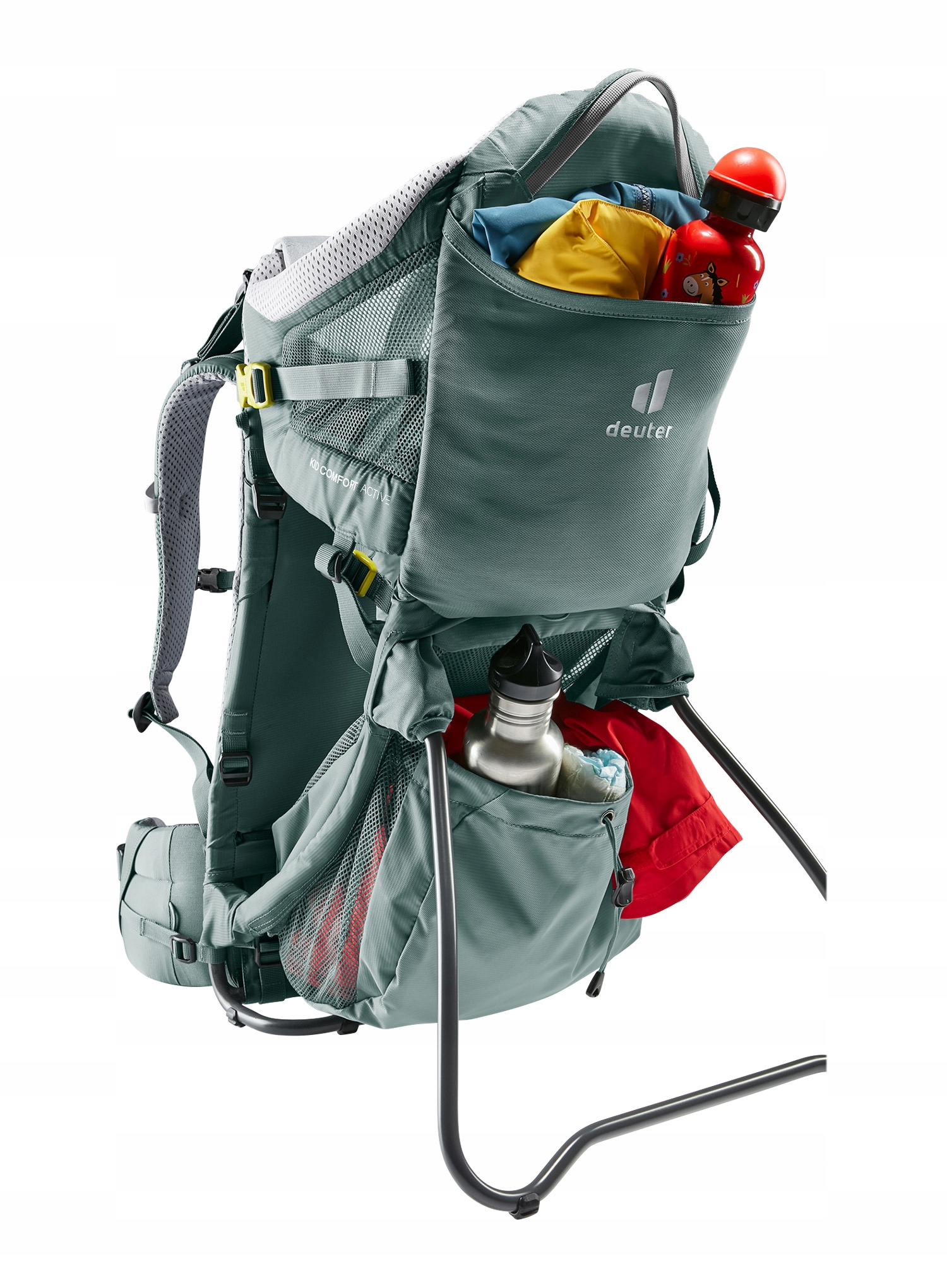 Рюкзак Deuter Kid Comfort Active синего цвета оснащен регулируемой системой переноски Deuter Lite, изготовленной из перфорированного пенопласта, покрытой сеткой. Такое решение обеспечивает очень хорошую стабильность и хорошо удаляет лишнюю влагу. Важно отметить, что туристическая компания сертифицирована TÜV GS, что означает высокий уровень безопасности. Дорожная сумка Deuter имеет профилированные лямки с мягкой и приятной на ощупь пеной, обтянутой тканью. Важно отметить, что в этой модели используется решение VariQuick, позволяющее регулировать высоту подвески лямок, чтобы вы могли подогнать их под свой рост. Рядом с лямками имеются стабилизирующие лямки. Эта переноска для ребенка также оснащена широким регулируемым поясным ремнем и регулируемым нагрудным ремнем. При транспортировке в машине модель можно сложить, чтобы она не занимала слишком много места.