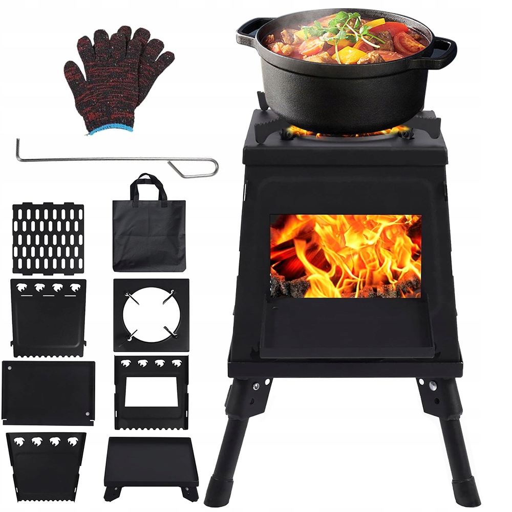 Идеально для использования с различными типами топлива - древесины, ветвей, листьев или других легко доступных материалов. Компактный и легкий, после складывания, он занимает минимальное пространство, что делает его идеальным решением для любителей рыбалки, кемпинга, походов и свежего воздуха.