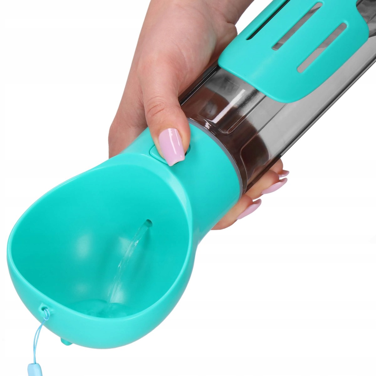 Дорожная бутылочка с собачьей миской является чрезвычайно полезным аксессуаром для людей, путешествующих со своим домашним питомцем. Удобная в использовании бутылочка позволяет легко и быстронакормить четвероногого друга во время похода. Дополнительно бутылочка оснащена контейнером, в который можно упаковать корм для питомца, а также одноразовые пакеты для фекалий.