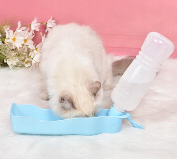 Бутылка очень практична и удобна в использовании, легко складывается и раскладывается. . К нему прикреплена чаша, в которую наливается вода из бутылочки, что облегчает питье питомца.