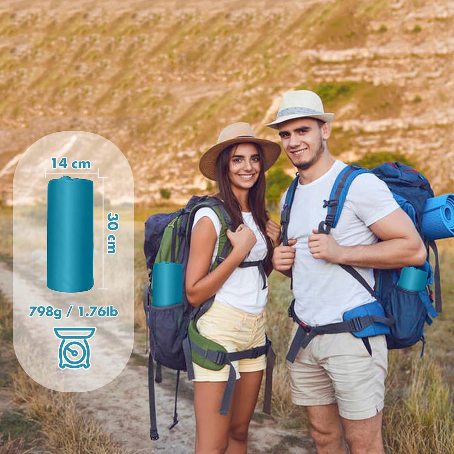 - кемпинг оснащен снимками на стороне, так что вы можете легко объединить две коврики, создавая двуспальную кровать, покрывая весь пол палатки, предотвращая скольжение. Кемпинг, походы, поездки, велосипедные и автомобильные поездки, рюкзаки, походы и пляж.