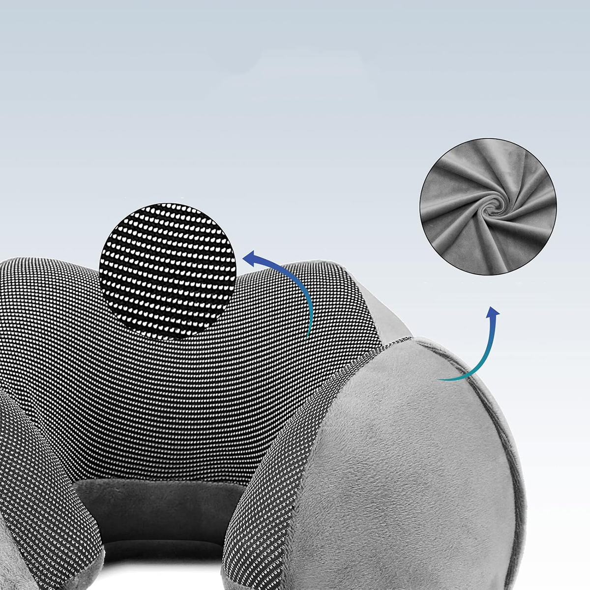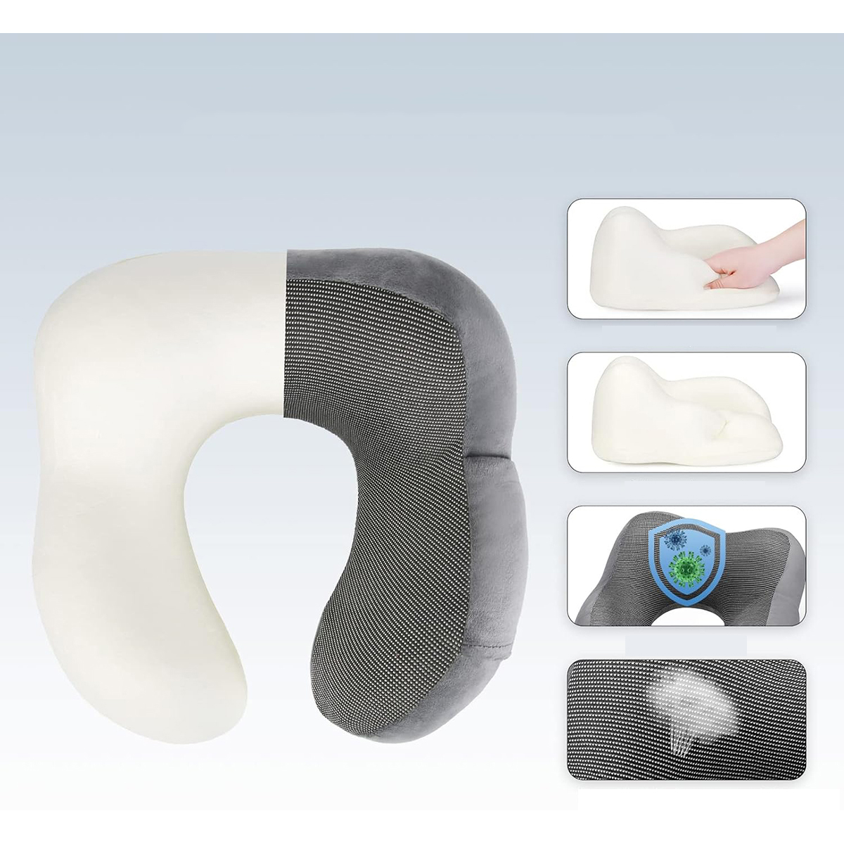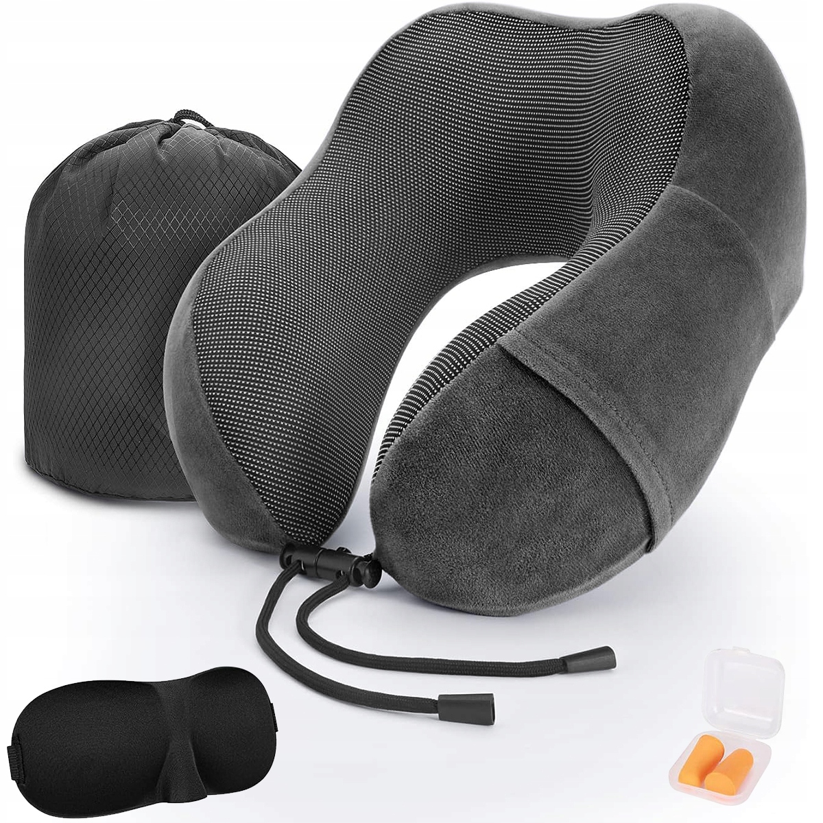 Подушка для шеи, подушка для шеи из пены с эффектом памяти, эргономичная дорожная подушка, дорожная подушка для шеи с маской для сна, берушами и сумкой. Идеально подходит для путешествий, самолета и офиса (серый)