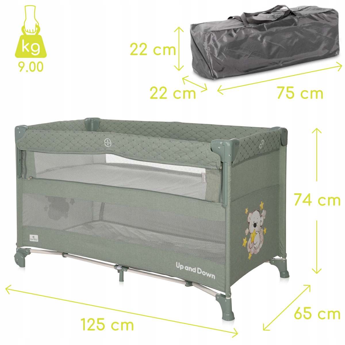 Лорелли вверх и вниз до 3 -дюймовой кровати (туристическая кровать, плейпен, дополнительная кровать), которая идеально подходит для путешествий, с бабушкой и дедушкой и дома, сопровождающих ребенка с первых дней жизни до 3 лет, предлагая комфорт и безопасность в течение этого времени.