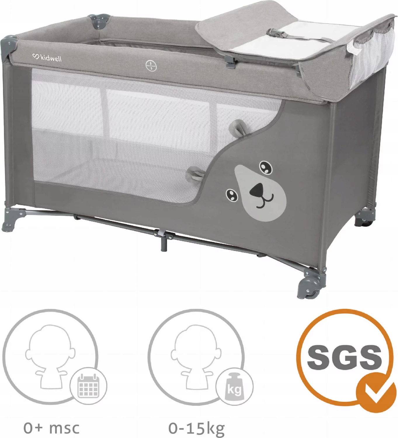 Кроватка имеет два уровня сборки матраса. Górn предназначен для самых молодых детей (от рождения примерно до 6 -го месяца), и дно можно использовать до тех пор, пока ребенок не достигнет веса 15 кг. Одна из более коротких сторон оснащена открывающимся входом с ползунгом. Благодаря этому, кроватка будет работать как плейпен. Примечательно, что свиток, сделанный из пятно, устойчивой ткани. Это будет способствовать ежедневному уходу за ребенком и частыми изменениями в подгузнике. В целом можно упаковать в компактном транспортном пакете.