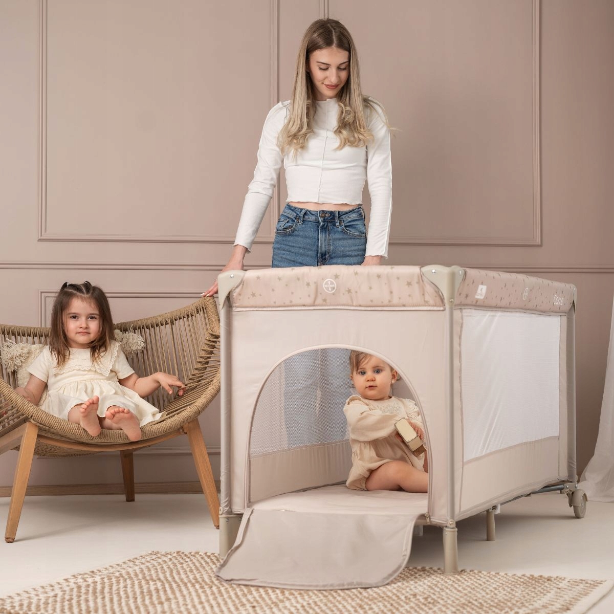✔ Большие колеса позволяют свободно перемещать кроватку , а тормоз ног обеспечивает устойчивость на любой поверхности - практическое решение, когда ребенок играет или спит.