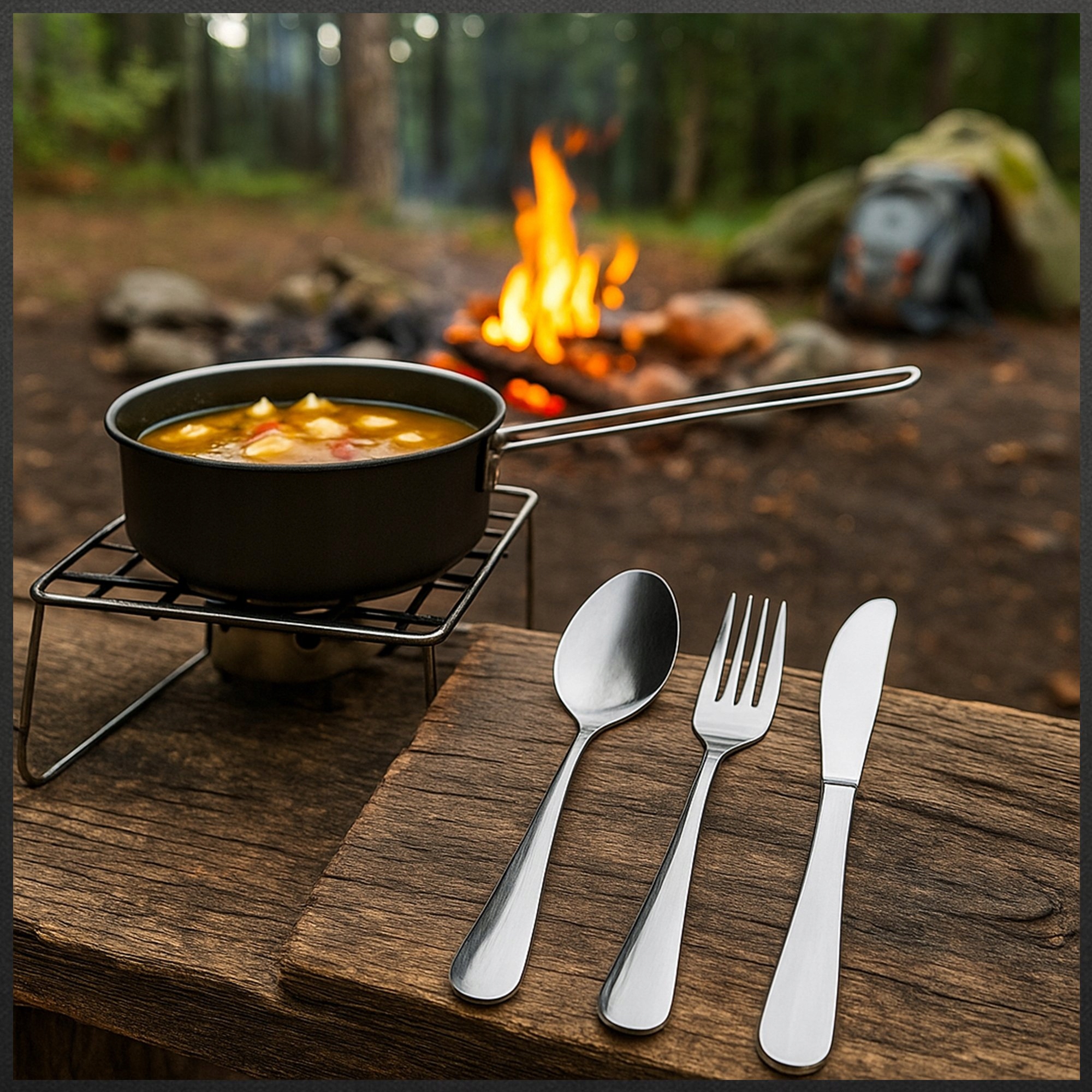 Набор походных столовых приборов из нержавеющей стали — идеально, чтобы взять с собой! 🍴🌲