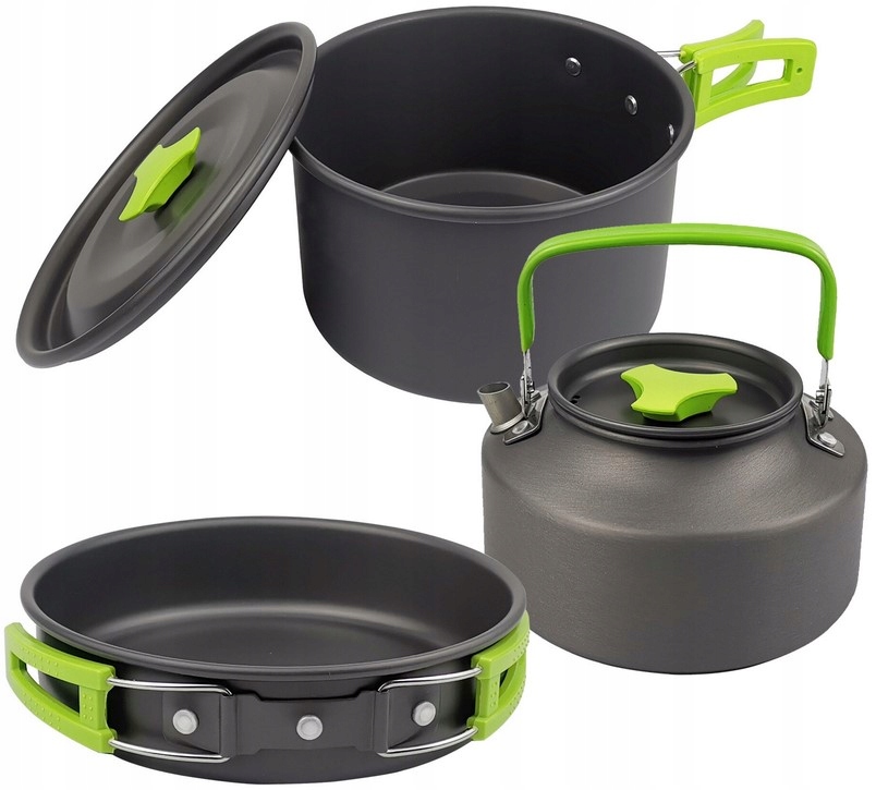 - Универсальная - портативная кухонная утварь - это набор, который можно использовать практически в любом месте. Идеально подходит как дома, так и во время путешествий, например, в кемпинге или палатке. Набор предназначен для 2 человек. Складные ручки легко носить сосуды.
