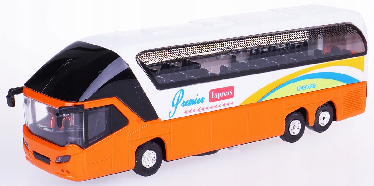 Туристический экспресс-автобус выполнен очень аккуратно из металла с пластиковыми элементами с инерционным приводом. Автобус имеет сдвижные правую и боковые двери и открывающийся багажник.