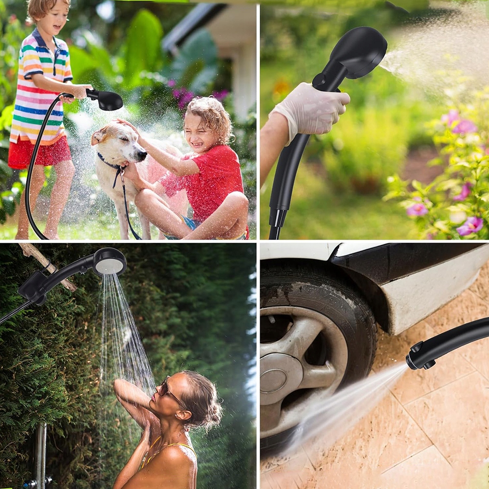 Душ для кемпинга оснащен держателем для душа, всасывающими чашками и крючками, так что вы можете наслаждаться душем, не используя свои руки и освобождаете руки. Подключите ручку и всасывающую чашку, чтобы прикрепить трубку к любой плоской, гладкой поверхности, а затем подключите ручку и крючок, чтобы повесить насадку для душа на ветви дерева или другую опору. Крюк также можно использовать для повесывания на полотенцах. Подходит для душа внутри и снаружи, сада, кемпинга, гриля, походов, пляжа, путешествий, детской ванны, уборки домашних животных, промывки автомобилей и полива