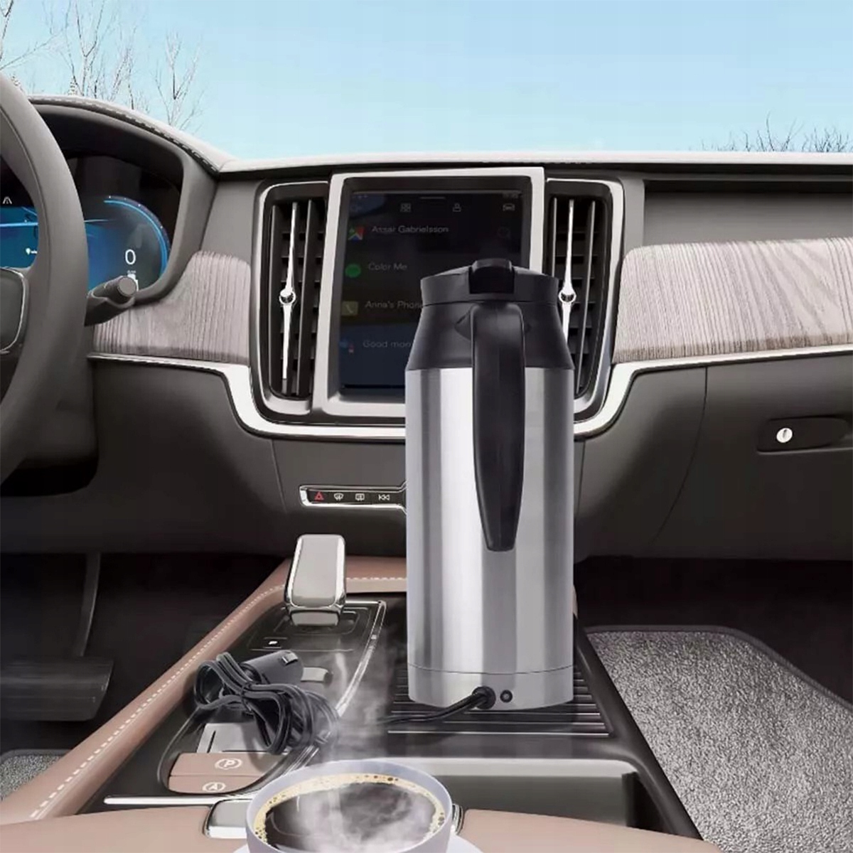 ⭐ Sawe 750 мл 12 В, автомобиль из нержавеющей стали, сигаретный обогреватель, электрический чайник, термос для нагревательной воды, кофе, молоко, чай (серебряный черный) ⭐ h1>