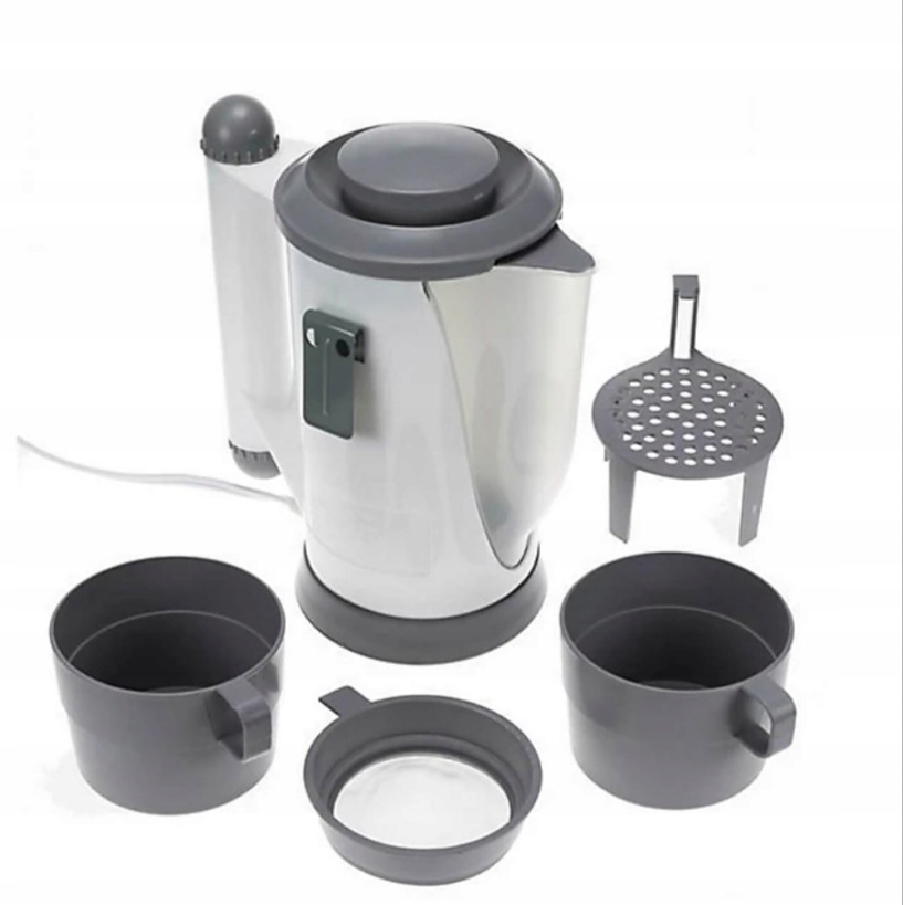 Кеттл автомобиля с мощностью 700 мл и 100 Вт. Напряжение составляет 12 В. Содержимое набора: