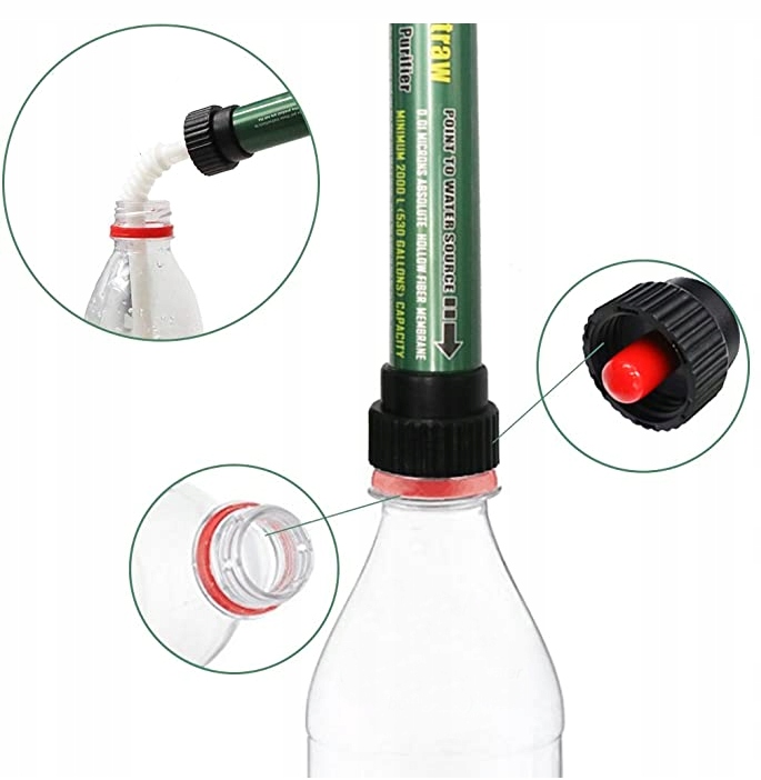 Благодаря этому вы можете использовать бутылку с минеральной водой, чтобы выбрать более чистую воду в дикой природе, а затем прикрепить бутылку с минеральной водой, чтобы пить.