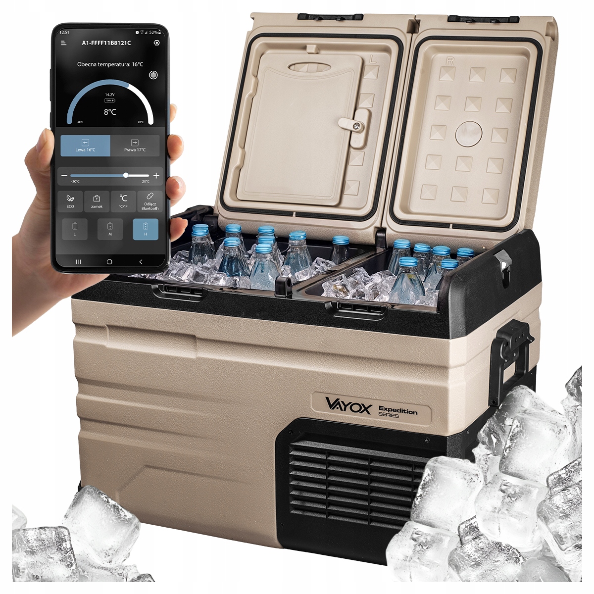 Портативный компрессор -холодильник Vayox VA -E39 был оснащен двумя независимыми камерами охлаждения 28L и 11L, которые вы можете управлять отдельно - каждая из них имеет возможность индивидуальной температуры от -20 ° C до диапазона +20 ° C .