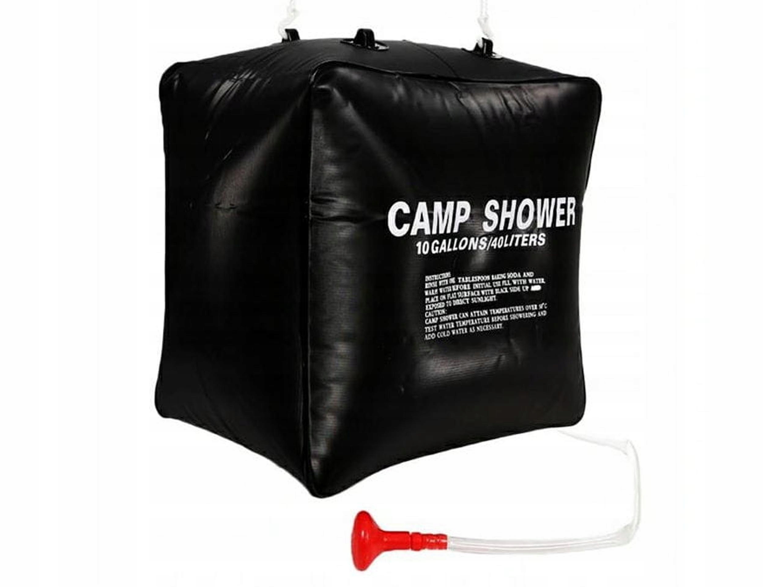 Этот душ вмещает 40 литров воды, что спасибо Под действием солнечных лучей и черного материала, из которого он изготовлен, он быстро нагревается, даже до температуры 40°С. После использования его легко спрятать, а благодаря гибкости он не займет много места в багаже.