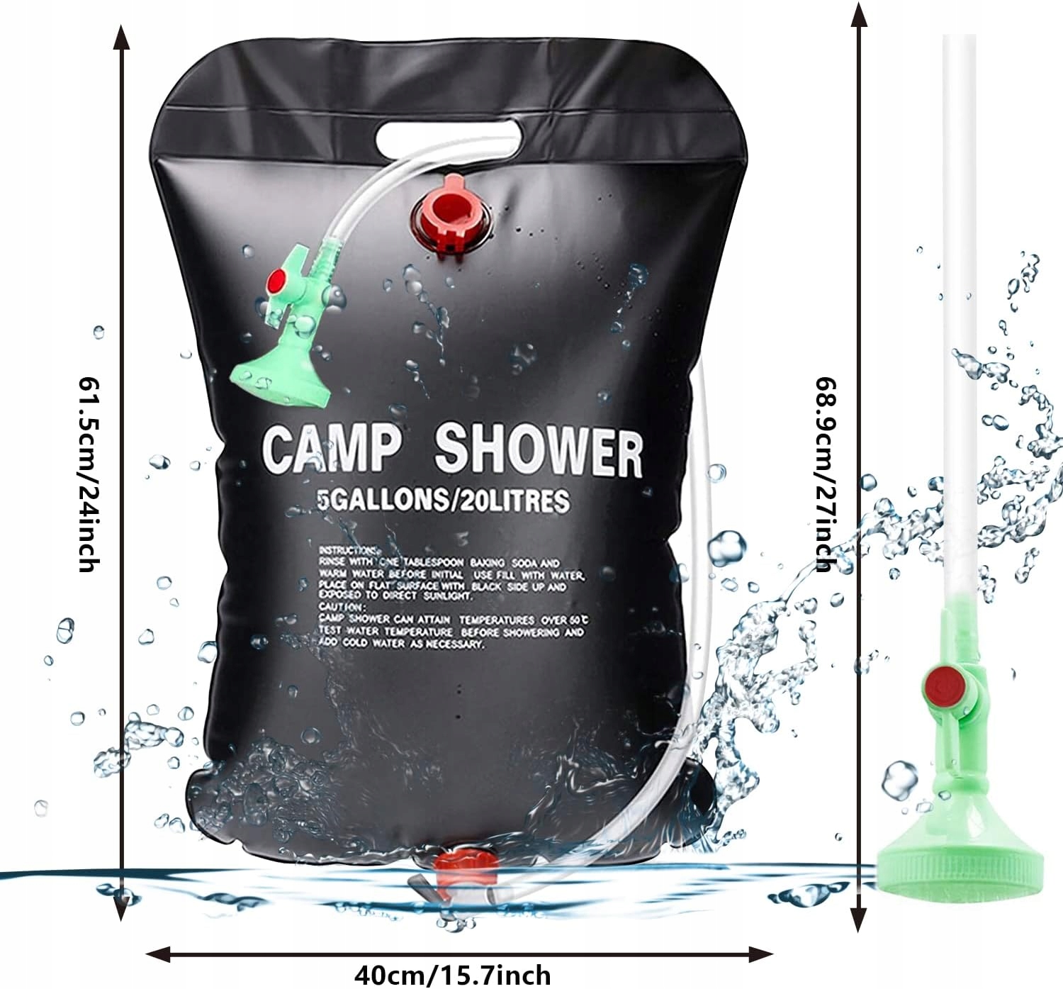 [Большая вместимость] — этот мешок для душа на солнечной батарее имеет большую емкость для воды — 5/20 л, чего достаточно, чтобы вы могли принять теплый и свежий душ в кемпинге или где угодно и внезапно расслабиться.