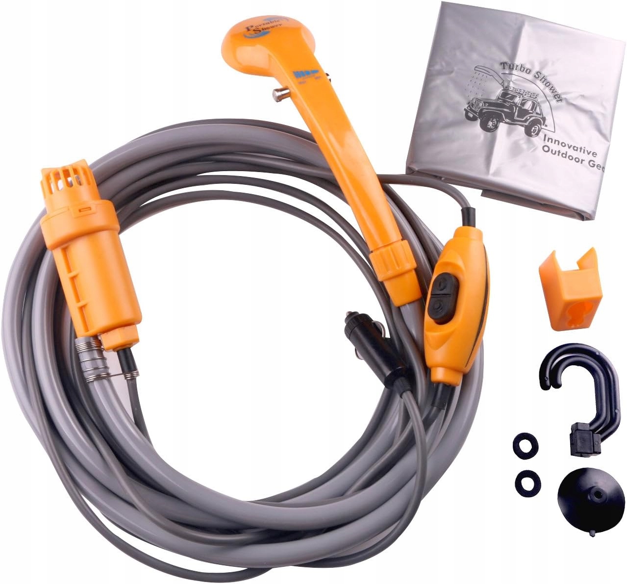Походный душ на 12 В можно подключить к прикуривателю вашего автомобиля, кемперу или другому портативному источнику питания на 12 В благодаря длине 4,5 метра. кабеля и 2- вам хватит свободы для метрового водяного шланга. Идеально подходит для вашего следующего похода.