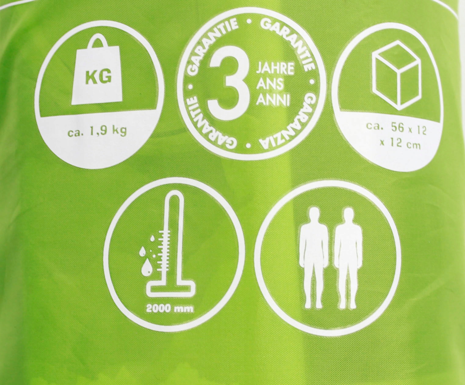 - крыша палатки: гидростатическая высота: 2000 мм; Полиэтиленовый пол: гидростатическая высота: 1500 мм.
