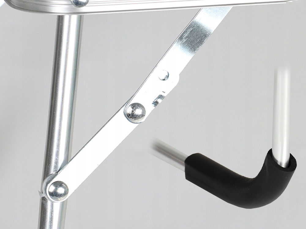 Противоскользящие накладки на ножках предотвратят перемещение стола. Благодаря складным ножкам стол в сложенном виде занимает мало места. Петли стола фиксируются, поэтому нам не придется беспокоиться о том, что стол сложится сам.