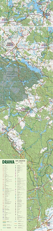 Картографическая часть: туристическая и каякинговая карта реки Драва с прилегающими территориями от Чаплинека до Кшижа-Велькопольского, легенда на польском, немецком и английском языках. Карта в защитном жестком футляре из фольги.