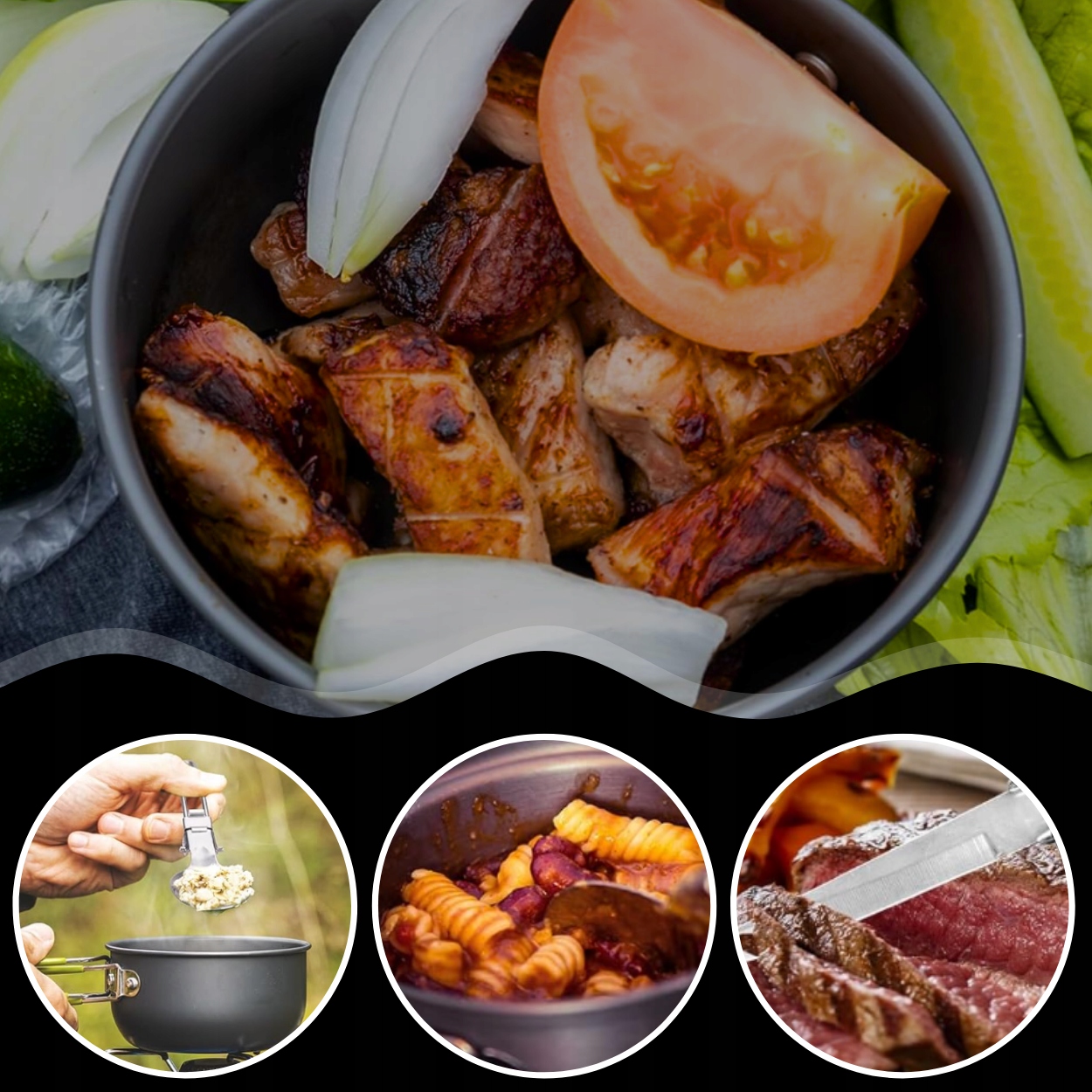 Планируете ли вы кемпинг, разведчический лагерь или поездку на выживание? Вам нужен легкий, твердый и практичный набор для приготовления пищи на открытом воздухе? Это щупальце с крышкой и складыванием столовых приборов будет соответствовать ожиданиям каждого любовника на открытом воздухе. Упакуйте его в свой рюкзак и будьте готовы к любой кулинарной ситуации в полевых условиях!