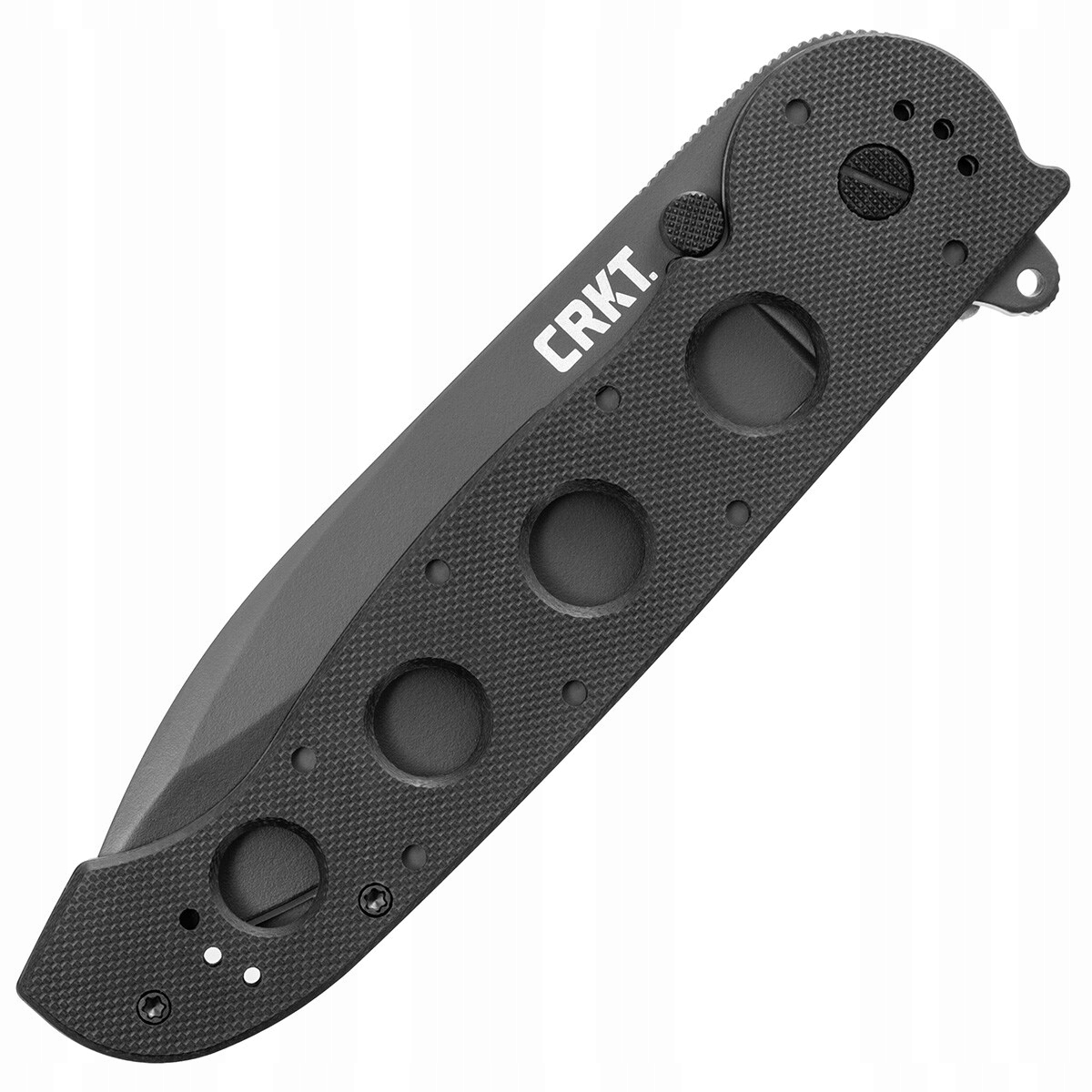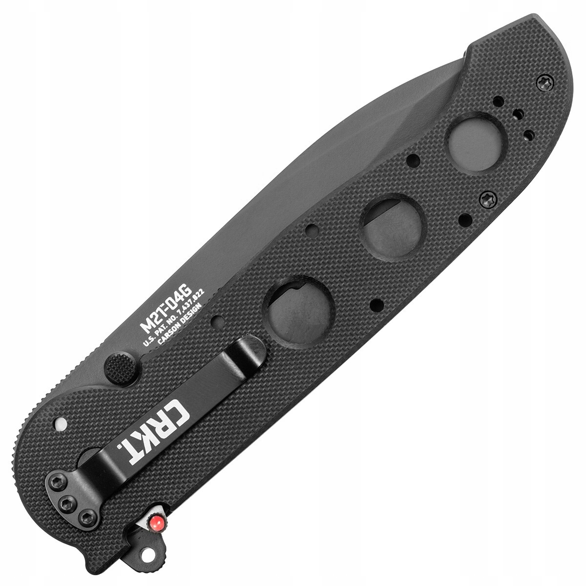 В основе конструкции crkt m21-04g лежит рама из закаленного авиационного алюминия с покрытием с накладками из материала G10 и одной стальной пластиной, служащей фиксатором и дополнительной опорой оси вращения клинка. Рукоять чрезвычайно прочная, удобная, а благодаря ребрам и полуоткрытой конструкции делает уход за ножом очень простым. Ребристый хвостовик лезвия, вставленный в рукоятку, создает удобную опору для большого пальца.