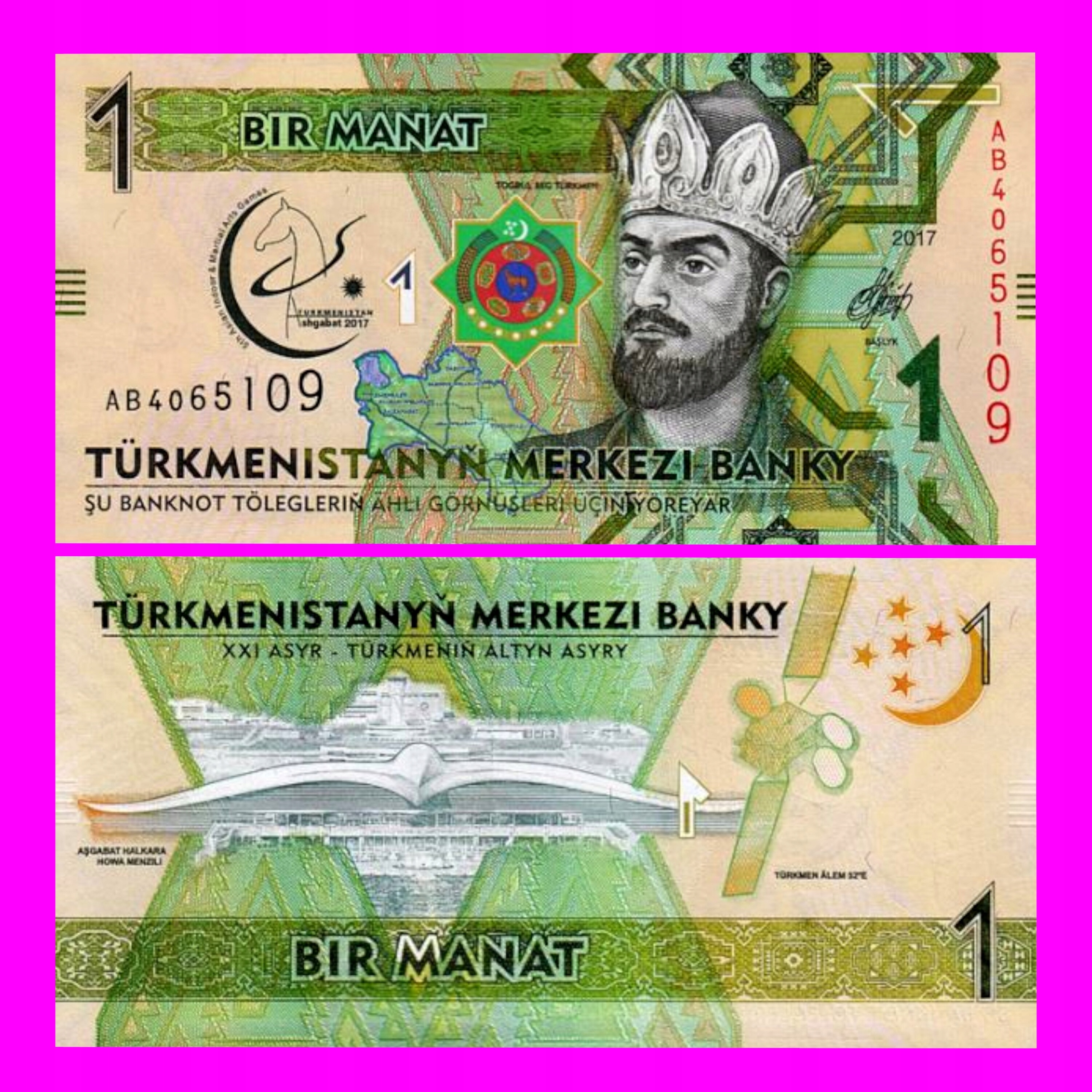 Turkmenistan 1 Manat 2017 UNC Dziedzic67