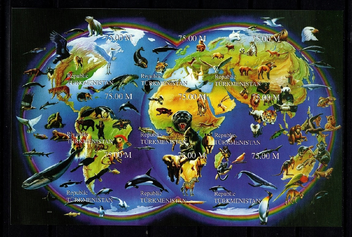 Туркмения. Почтовые марки / блок (фауна / карта) чистая
