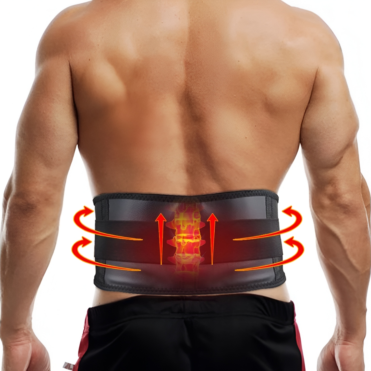 Благодаря турмалиновой части пояс излучает тепло, разогревание мышц и облегчение боли. Тепло, излучаемое поясом, ускоряет обмен веществ и улучшает кровообращение. Благодаря большим ремням на липучках ремень можно легко отрегулировать так, чтобы он идеально сидел на талии пользователя.