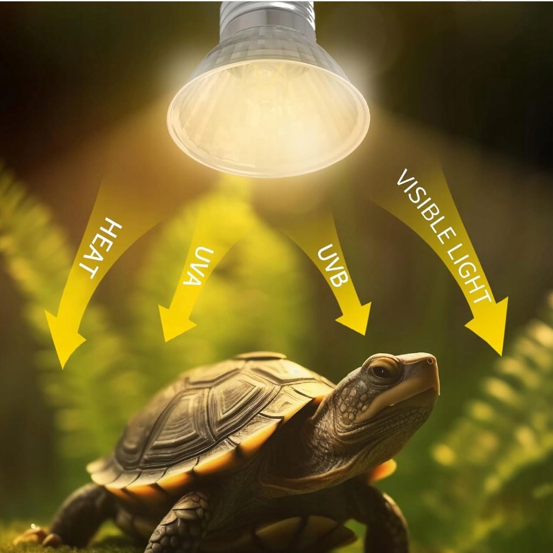 Это солнечная лампа полного спектра UVA+UVB, специально разработанная для рептилий, в основном используемая в местах обитания черепах, ящериц и других рептилий. Его основная функция заключается в имитации естественного света и сочетает в себе три ключевых преимущества: нагрев для получения тепла, содействие усвоению кальция и регулирование поведенческих ритмов: