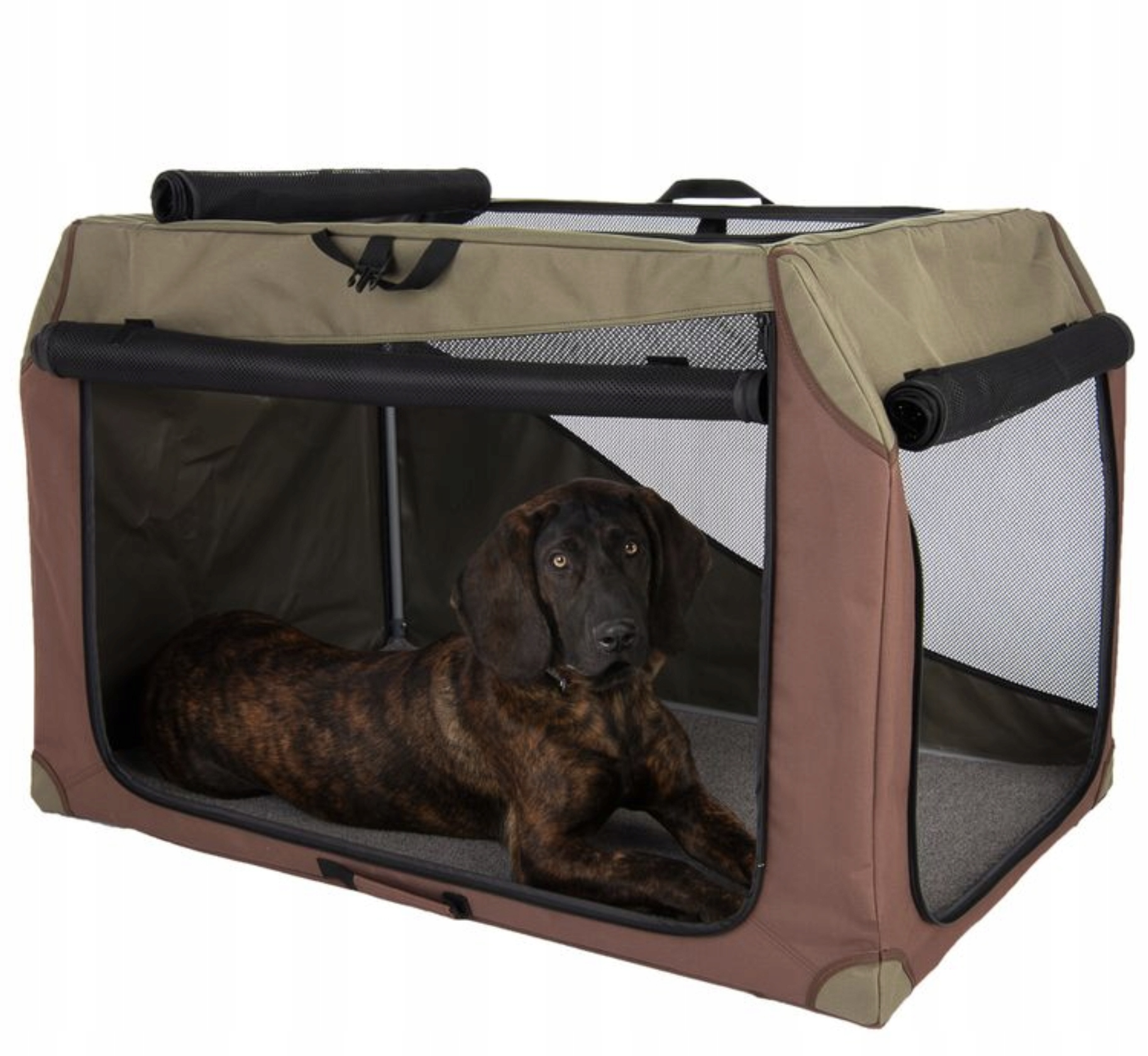 Складной ящик для крупных собак, спокойное место дома или в путешествии, простая вставная система, стабильные размеры, сетчатое окно с 3 сторон, 3 отверстия (сверху) и сбоку) , мягкая поверхность для лежания, изготовлена из полиэстера