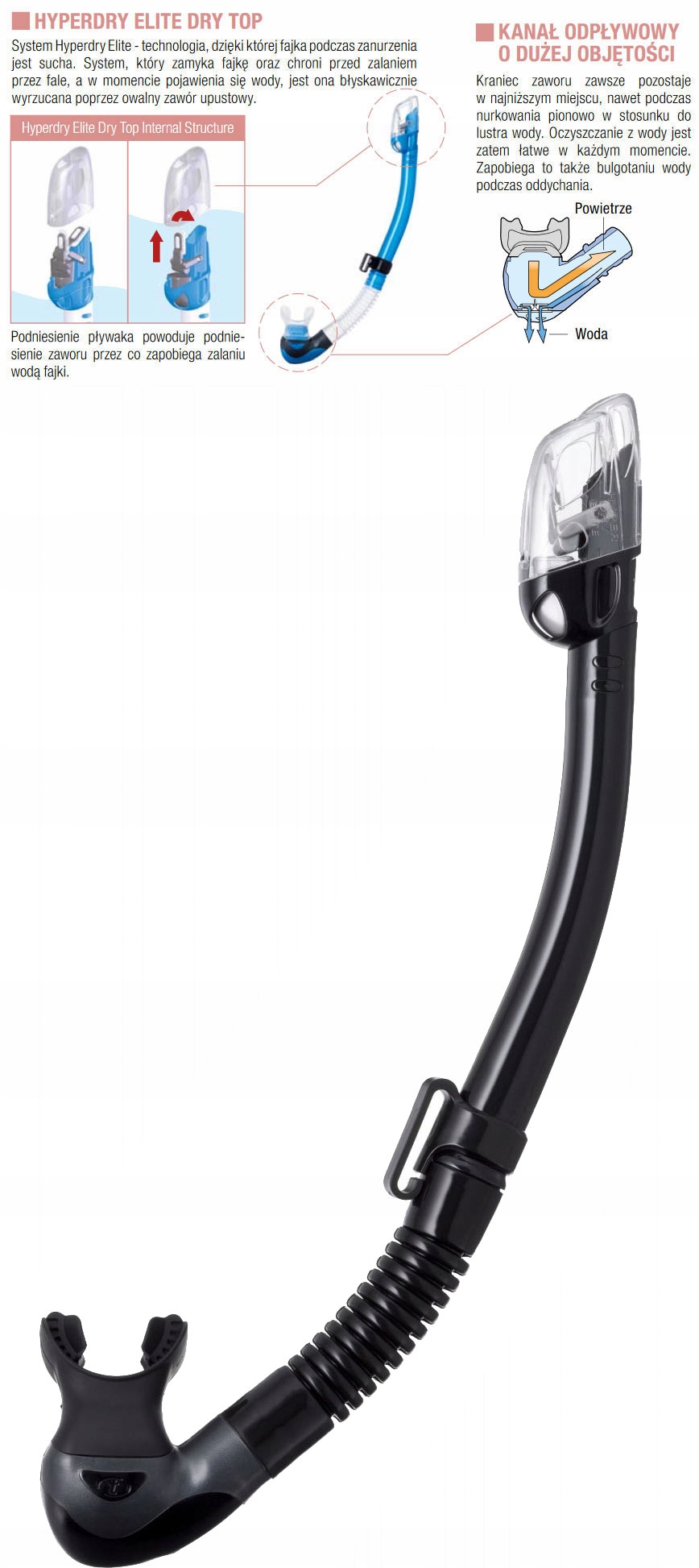 Трубка TUSA HYPERDRY ELITE II SP-0101 с гипоаллергенным силиконовым мундштуком, обеспечивающим комфорт использования, и верхним клапаном HYPERDRY ELITE, предотвращающим затопление трубки водой при полном погружении.
