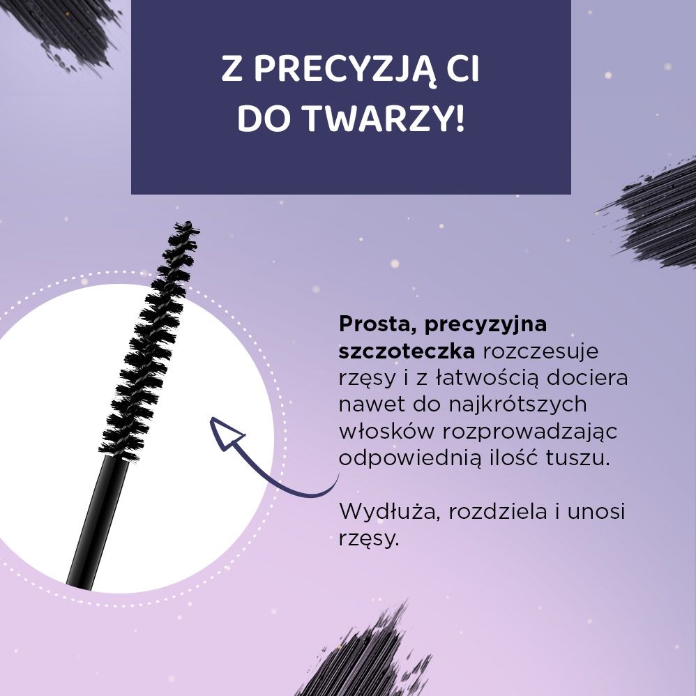 Формула туши гарантирует, что ресницы заметно приподнимутся и удлинятся. Точная щеточка не позволит ресницам слипаться и образовывать комочки. Он достигнет даже самых маленьких волосков! Его удобная форма превратит нанесение в сплошное удовольствие, независимо от формы и размера глаз.