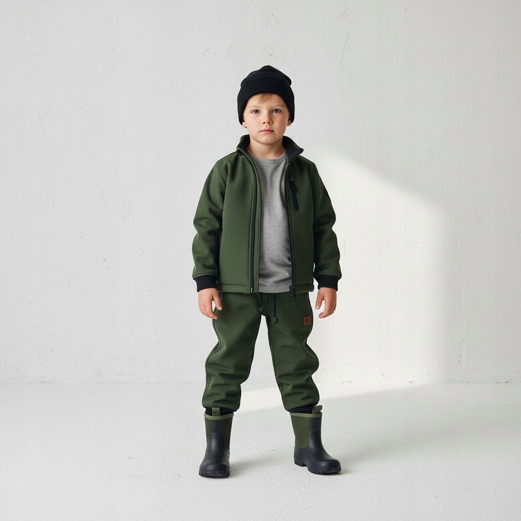 Чрезвычайно практичные и удобные брюки из софтшелла. Этот чрезвычайно прочный, ветронепроницаемый материал состоит из трех слоев, защищающих малыша.