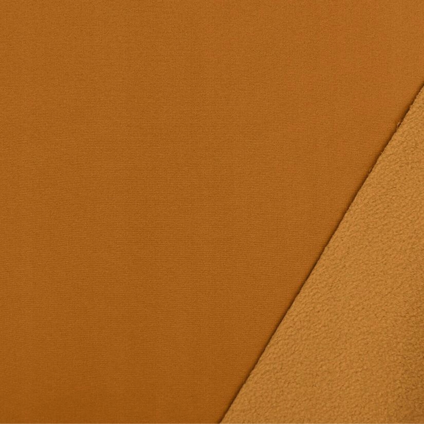 Детские брюки из софтшелла горчичного цвета. Этот практичный, ветрозащитный материал, идеально подходящий для переходных сезонов, состоит из трех слоев: