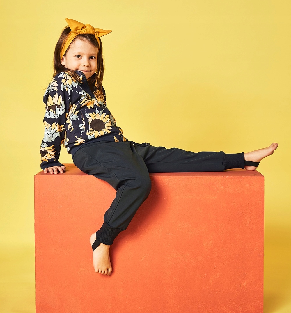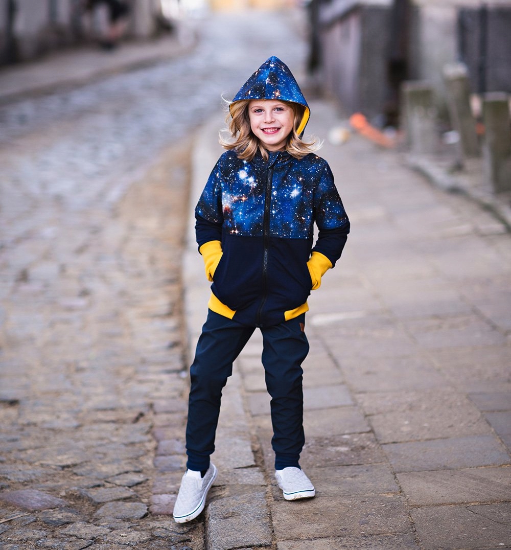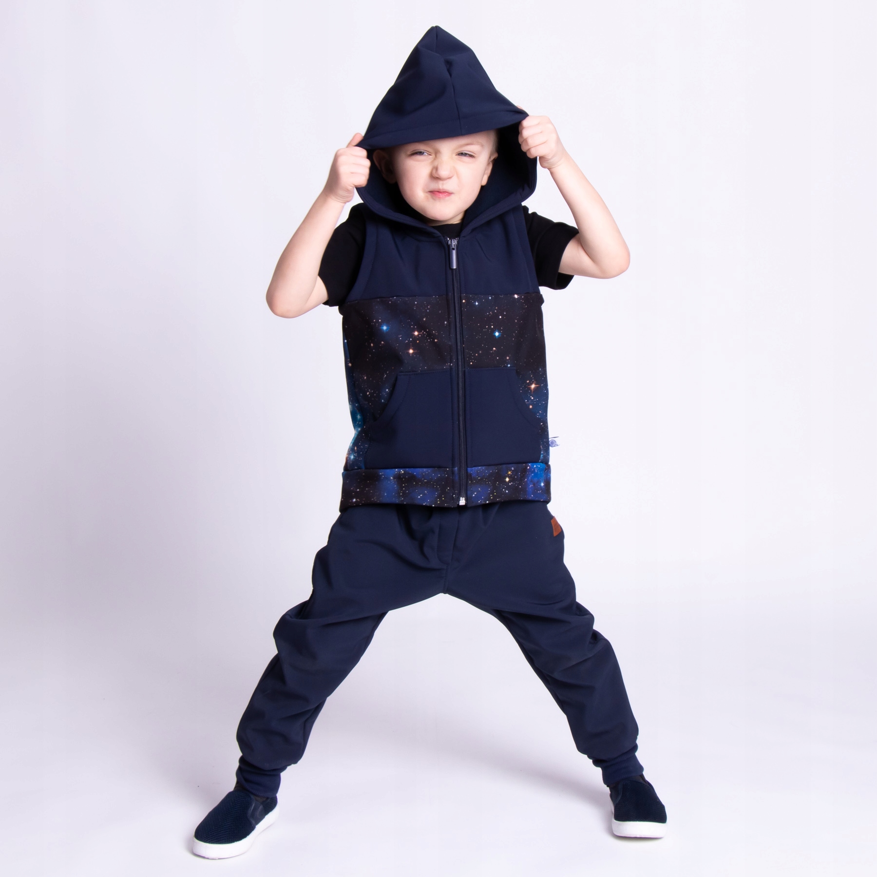 Темно-синие брюки из софтшелла идеально подходят для осенних прогулок, а также для повседневного использования. Также стоит надевать такие штаны каждое утро, когда мы ведем малыша в детский сад или ясли.