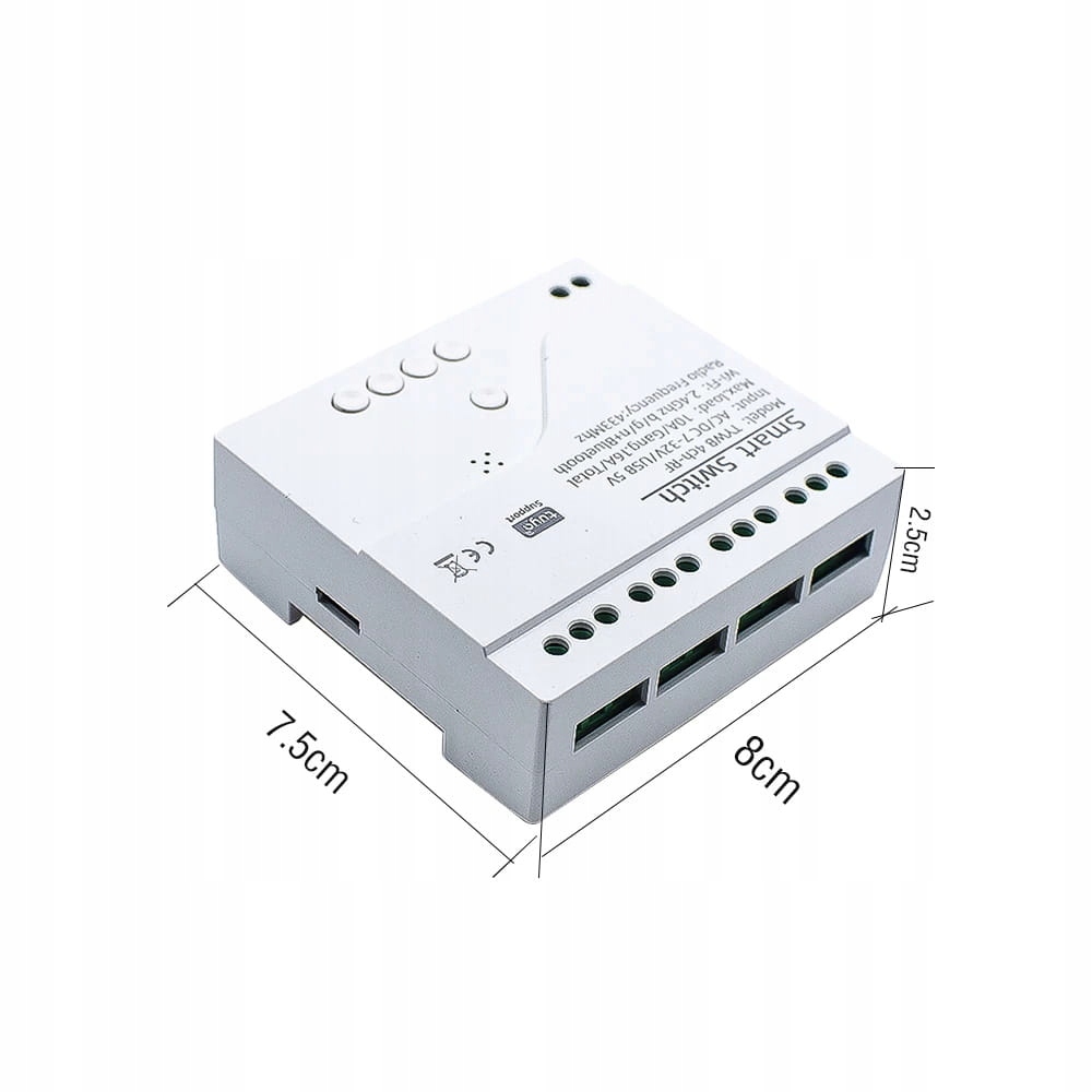 4-канальный WiFi + RF контроллер 433 МГц с сухими выходами, совместимый с программным обеспечением Tuya, Smart Life и обладающий всеми его возможностями.