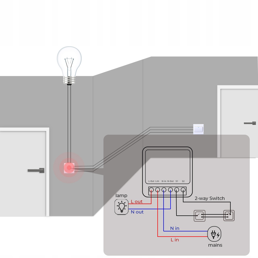 Один небольшой переключатель Wi-Fi скрытого монтажа с реле 16 А, 3500 Вт