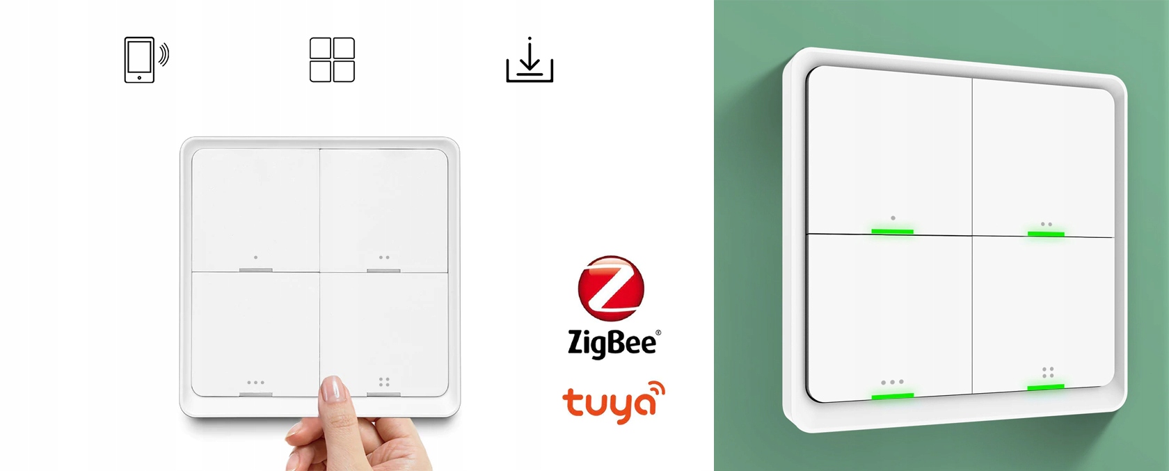 Беспроводная накладная кнопка/пульт управления для реализации сцен, заданных в приложении TUYA - Кнопка с 4 клавишами - 12 возможных СЦЕН - поддержка по протоколу ZigBee