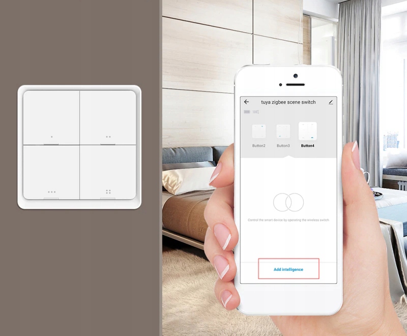 - 1 кнопка ZigBee/пульт дистанционного управления 4 канала — 12 сцен