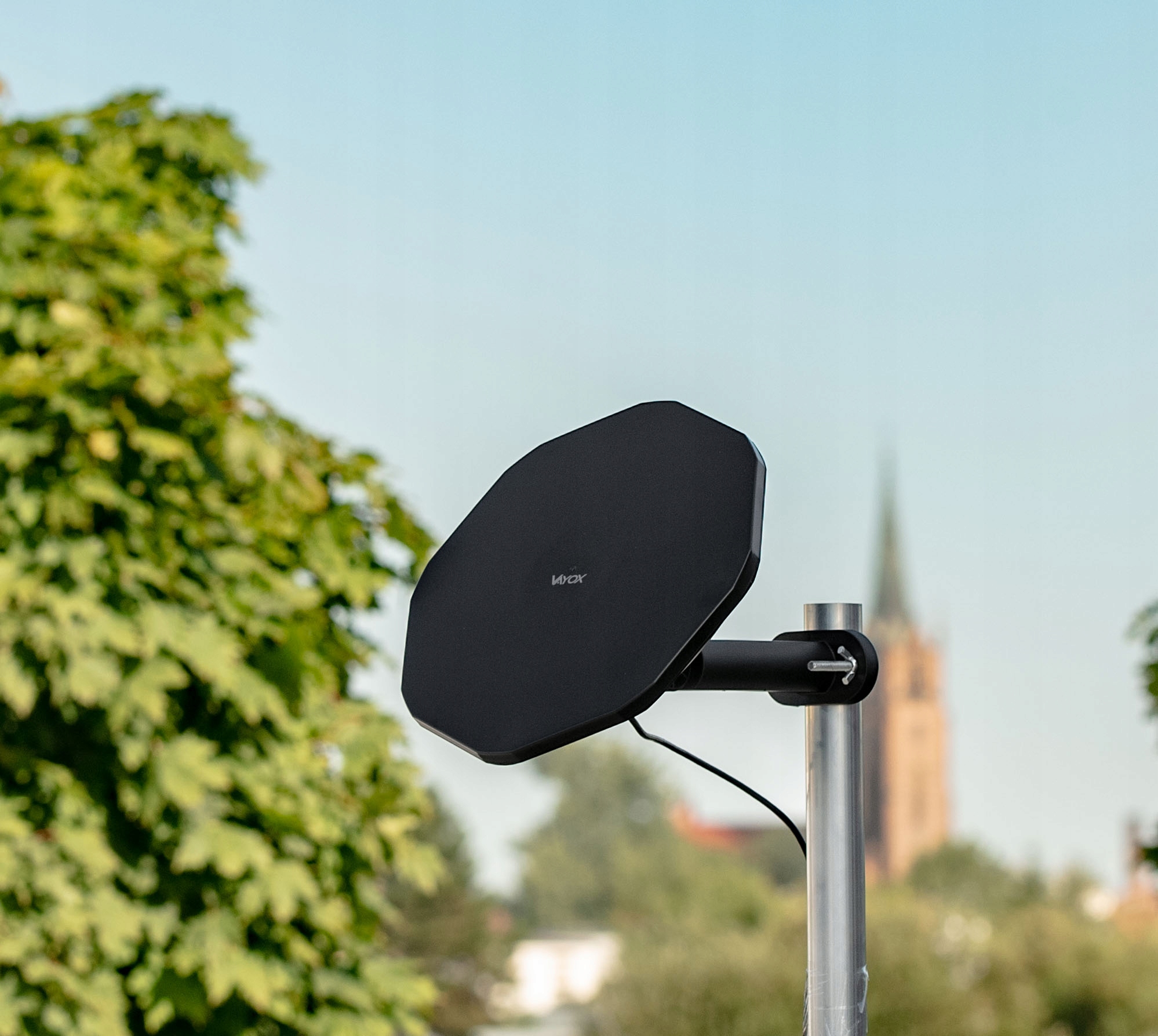 Горизонтальная структура антенны в виде плоского «диска» диаметром около 25 см, безусловно, облегчает прием телевизионного сигнала. Большая площадь поверхности означает, что антенна легче и эффективнее собирает сигнал и не теряет его. Это обеспечивает стабильное соединение и плавное изображение без лишних помех.
