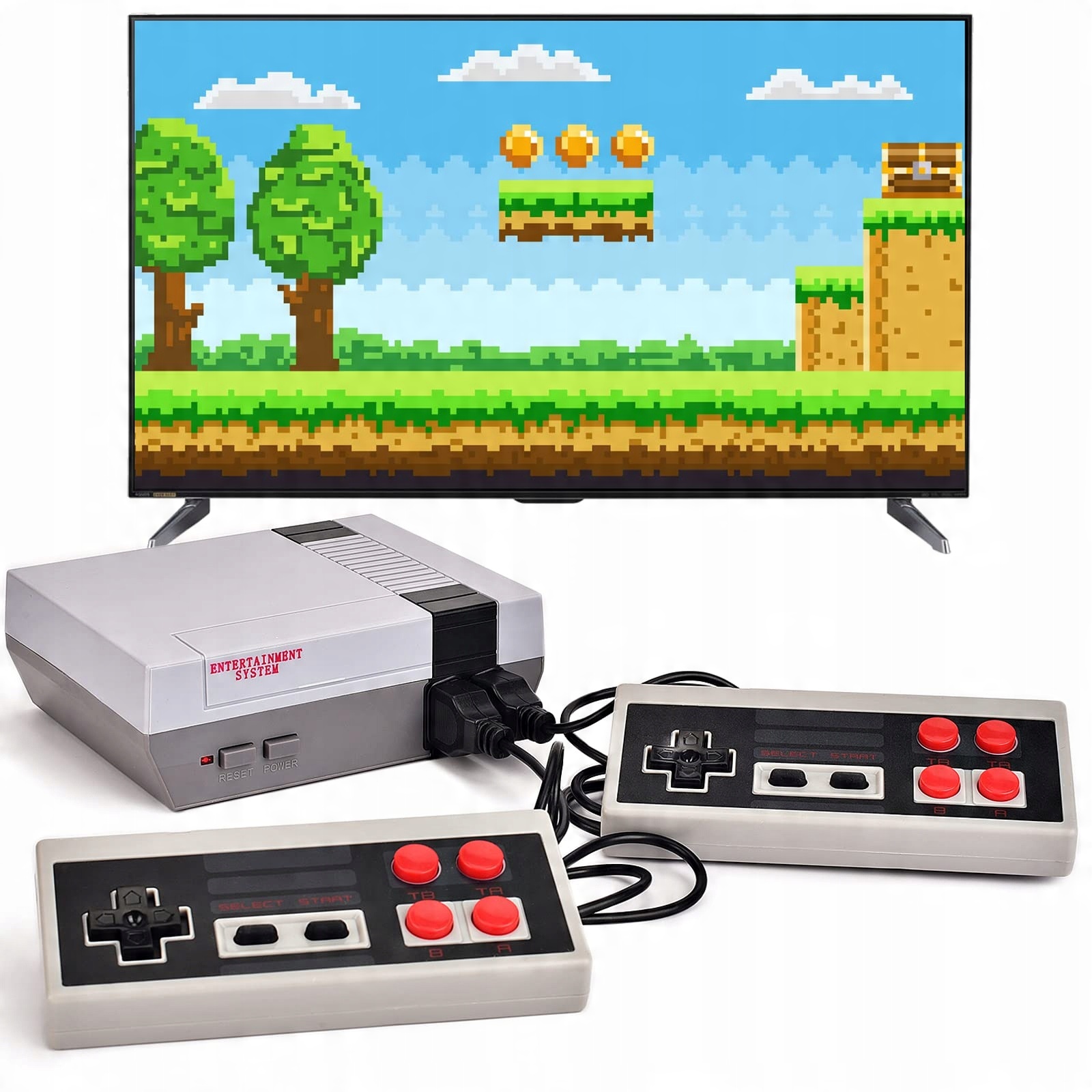 - Простота в использовании: просто подключите AV-кабель, подключите два входящих в комплект контроллера и начните играть в свои любимые игры. Для вашего удобства консоль также поставляется с сетевым адаптером европейского стандарта.