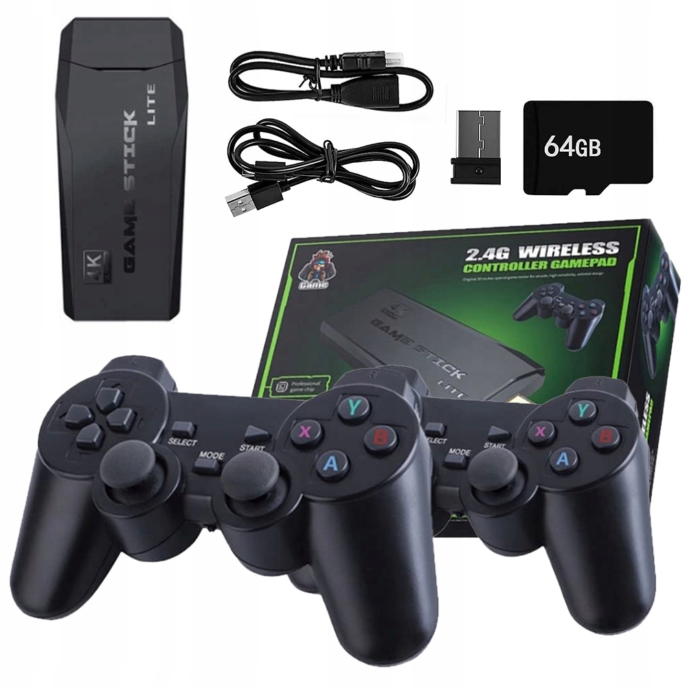 Два беспроводных геймпада, работающих на версии 2.4 Сигнал ГГц позволяет управлять консолью без использования кабеля.