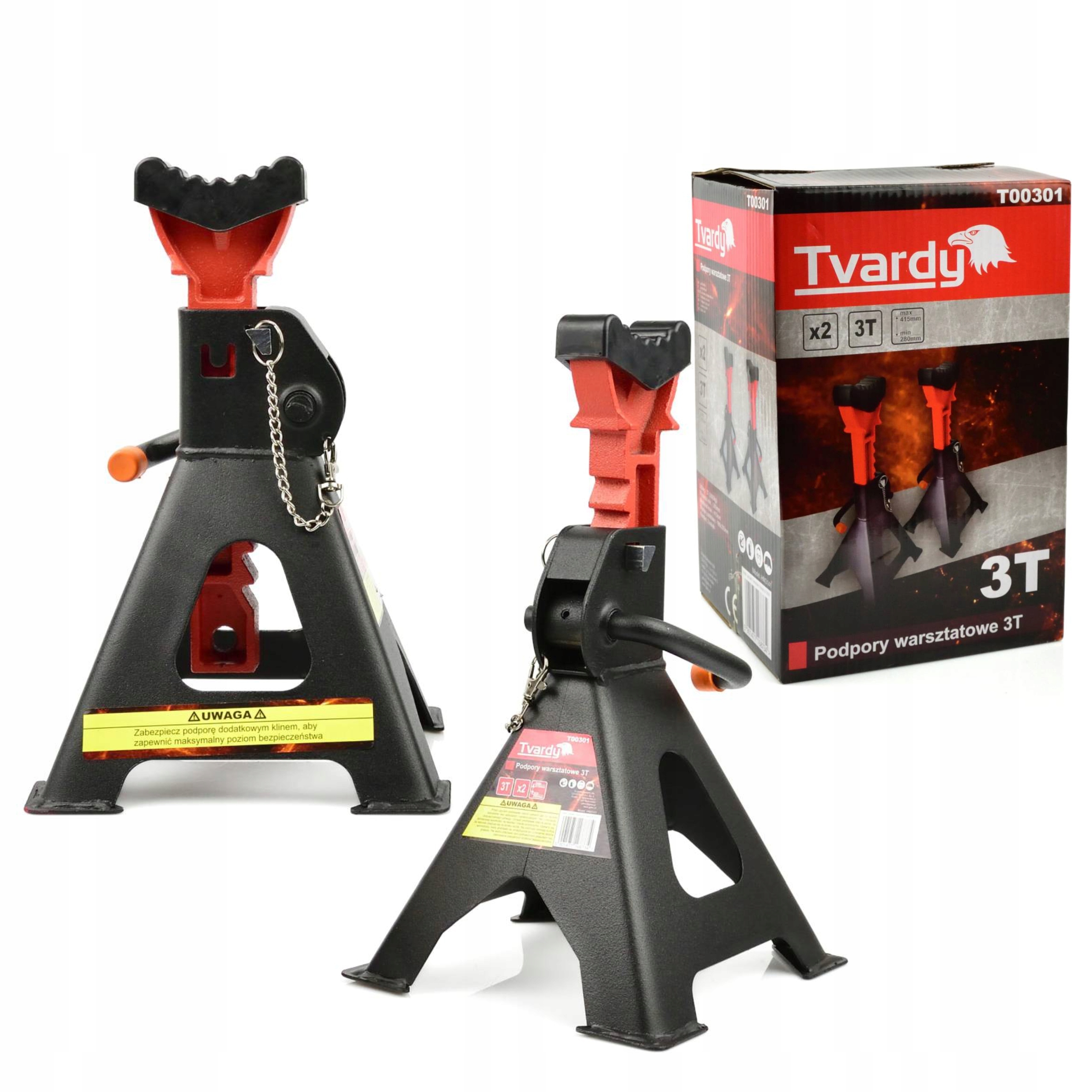 Набор подставок для автомобилей 3Т от профессионального бренда «Тварды». Очень прочные стойки из толстого стального листа с храповым механизмом, обеспечивающим очень точную регулировку высоты на многих уровнях. Дополнительно козелки оснащены специальным штифтом, фиксирующим храповой механизм. Используется для поддержки автомобилей и других устройств после их подъема подъемником. Эстакады облегчают работу, в частности, в мастерской или гараже. при замене колес и другом ремонте автомобиля.