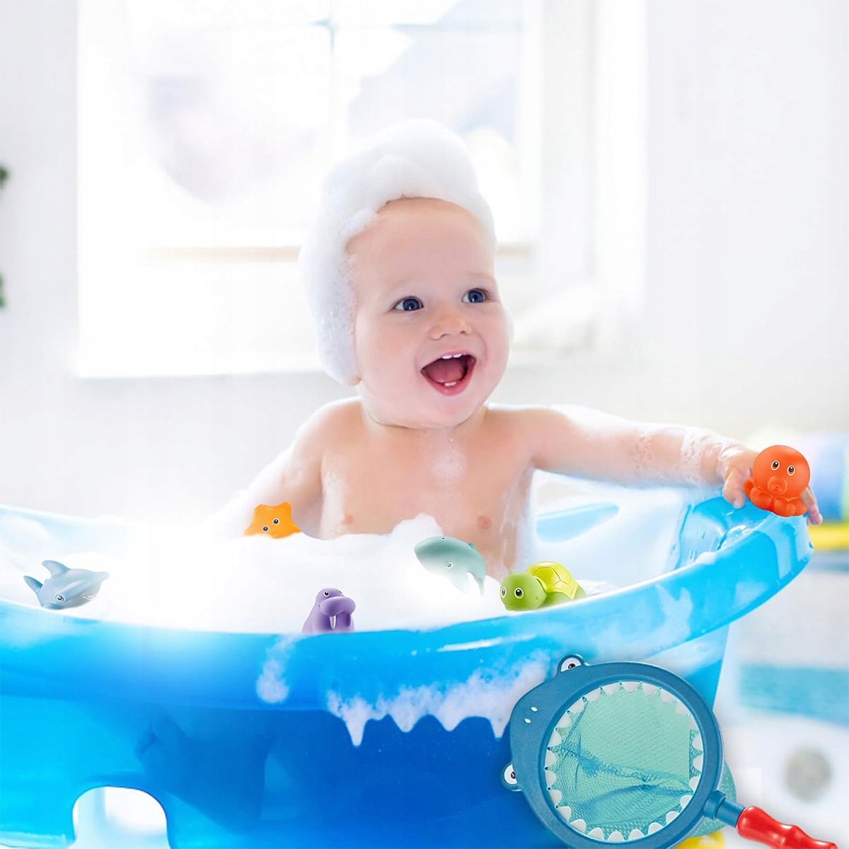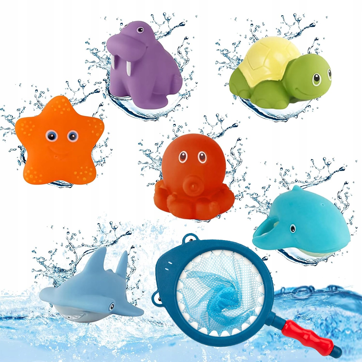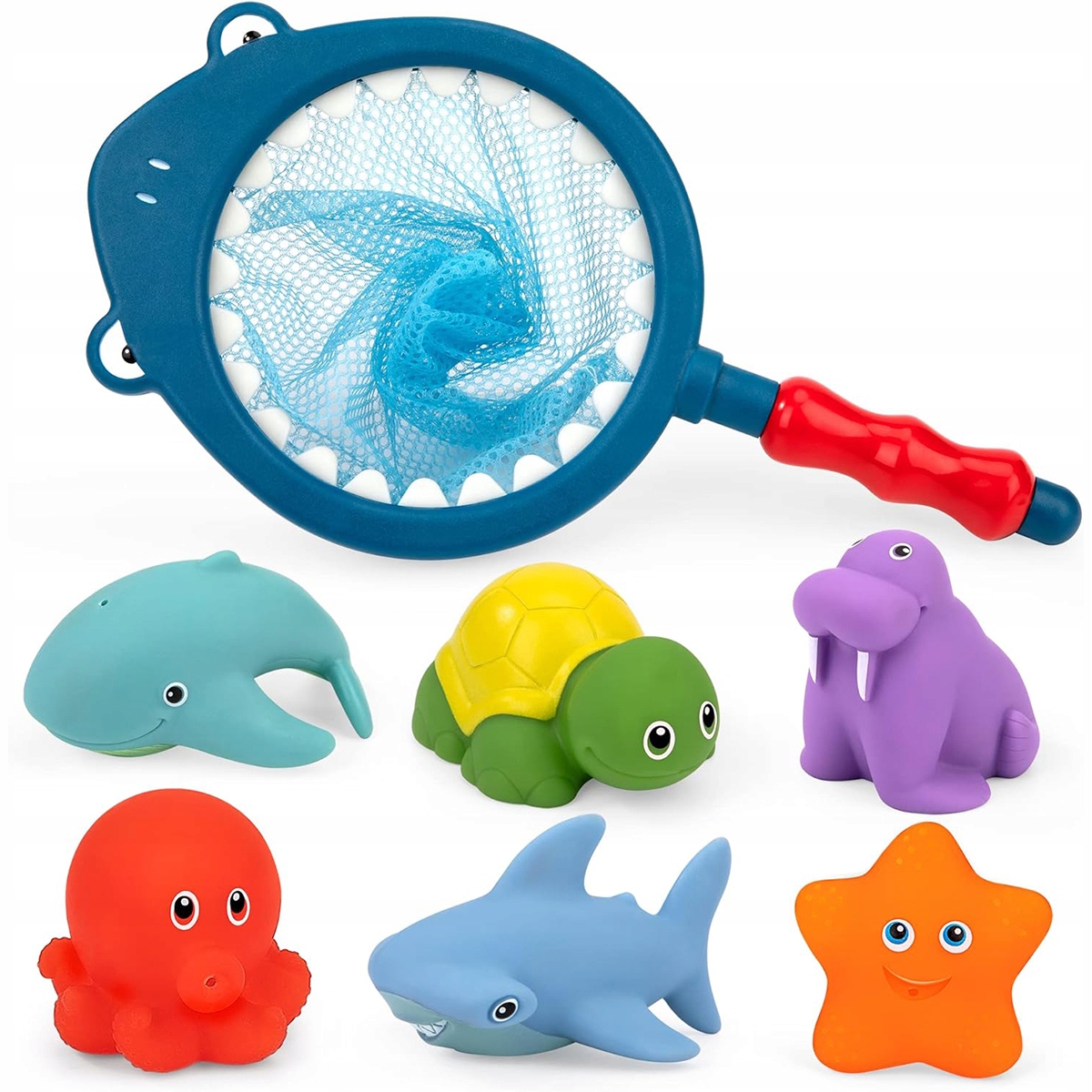 Детские игрушки для ванны, игрушки для ванны из 7 предметов, водные игрушки для детей, игрушки для бассейна с рыбной сеткой, забавный подарок для ванны с акулой-черепахой для мальчиков и девочек 2, 3, 4, 5 и 6 лет