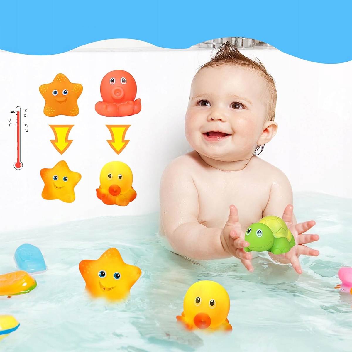 Плавают и плещутся в воде. Аккуратно сожмите моржа и черепаху, чтобы они запищали. Осьминоги и морские звезды желтеют (выше 38°C/100°F).