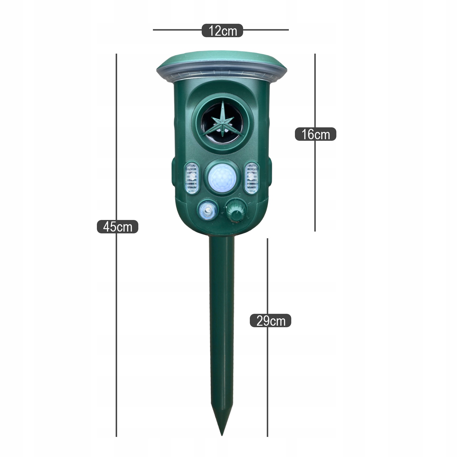 Ultra Sonic Technology эффективно пугает нежелательных гостей. Частота, генерируемая устройством, очень неприятна для животных, таких как собаки, кошки, птицы, лисы, дикие кабаны, оленя, зайры, белки, которые эффективно побуждают их избежать назначенной области. Обнаружение животных и операция устройства сигнализируется на встроенном светодиоде. Photovoltaic , который находится на вершине сдерживающего фактора. Дополнительным вариантом для зарядки батарея является подключение к USB -зарядному устройству . Зарядный кабель включен в набор.