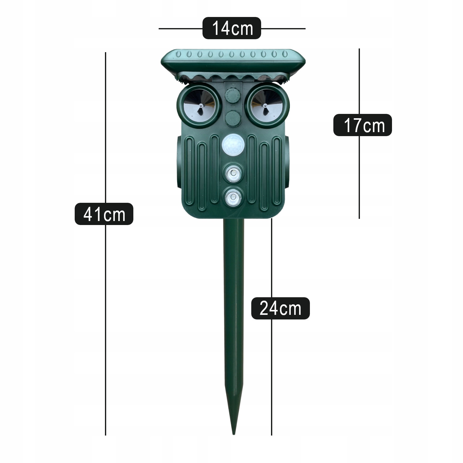 Ultra Sonic Technology эффективно пугает нежелательных гостей. Частота, генерируемая устройством, очень неприятна для животных, таких как собаки, кошки, птицы, лисы, дикие кабаны, оленя, зайры, белки, которые эффективно побуждают их избежать назначенной области. Обнаружение животных и операция устройства сигнализируется на встроенном светодиоде. Photovoltaic , который находится на вершине сдерживающего фактора. Дополнительным вариантом для зарядки батарея является подключение к USB -зарядному устройству . Зарядный кабель включен в набор. допускает точное определение охраняемой площади области. Нам не нужно беспокоиться о том, что отталкивание будет охватывать домашних животных или область, которая не должна быть защищена. Вторая ручка используется для изменения одного из 6 режимов эксплуатации