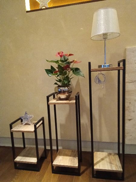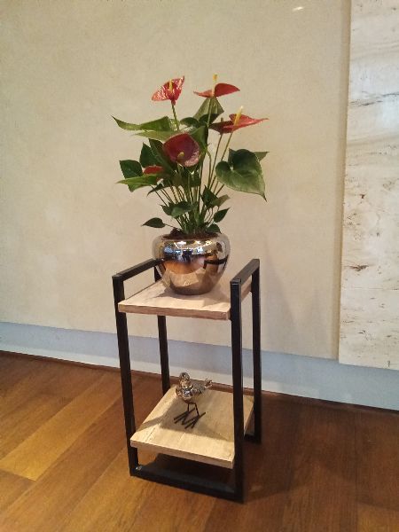 Каркас подставки для цветов выполнен из металлического профиля сечением 15 х 15 мм, окрашен стойкой порошковой краской, полки - из мебельного щита толщиной 18 мм.
