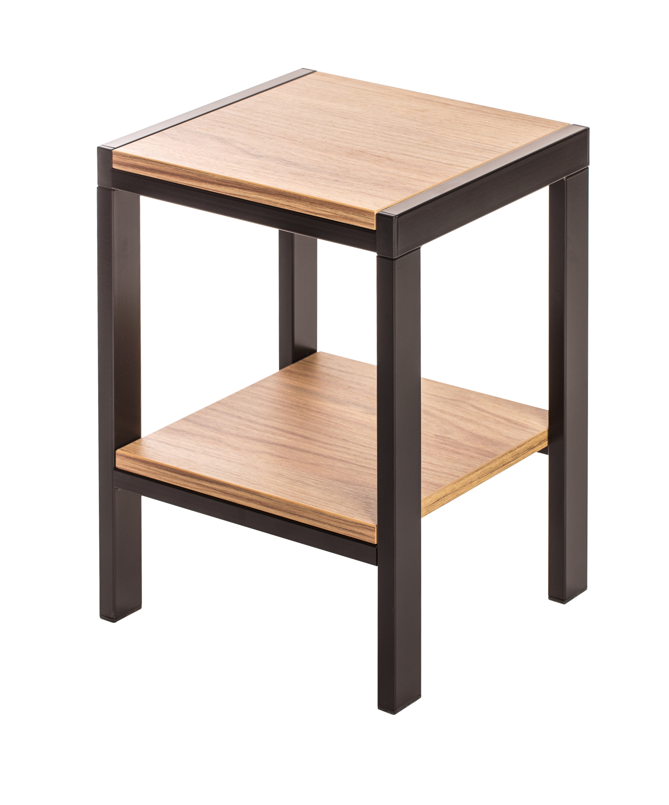 Каркас стола изготовлен из металлического профиля 40 х 20 мм, окрашенного стойкой порошковой краской, полки – из мебельного щита толщиной 18 мм.